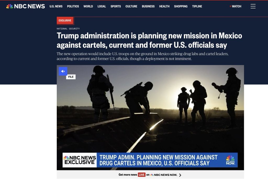 El gobierno del expresidente Donald Trump estaría considerando lanzar ataques militares en territorio mexicano dirigidos contra cabecillas y laboratorios de los cárteles de la droga, como parte de una ampliación de su estrategia antidrogas en el Caribe y el Pacífico, de acuerdo con un reporte de NBC News.