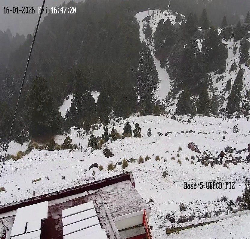 El Parque Nacional Nevado de Colima se cubrió de blanco este viernes tras registrarse la primera caída de nieve de la temporada. El fenómeno comenzó después de las 14:30 horas, favorecido por condiciones ideales de humedad, bajas temperaturas y vientos en la zona.